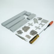 The WLKATA Mini T-Slot Starter Kit is a versatile collection of miniature aluminum extrusion profiles and associated hardware, designed for building custom fixtures, frames, enclosures, and workstation structures for desktop robotics, prototyping, and maker projects. The kit includes profiles in three popular sizes—8×8mm, 10×10mm, and 15×15mm—along with a comprehensive assortment of connectors, brackets, fasteners, and sliding nuts needed to construct rigid, reconfigurable structures.
