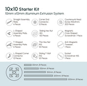 The starter kit is particularly well-suited for STEM education and prototyping environments where students need to design and build mechanical structures. Working with T-slot extrusions teaches practical engineering skills including structural design, tolerance management, fastener selection, and modular construction principles. The kit provides enough material for multiple small projects or one comprehensive workstation build.